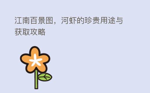 江南百景图,河虾的珍贵用途与获取攻略